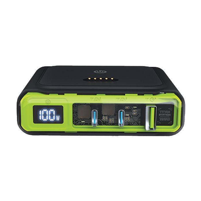 شحن مكتبي بقوة 100 وات يحتوي علي 3 مخارج شحن سريع متوافق مع باور تايتن بحيت يتم شحنهم لاسلكي بقوة 30 وات