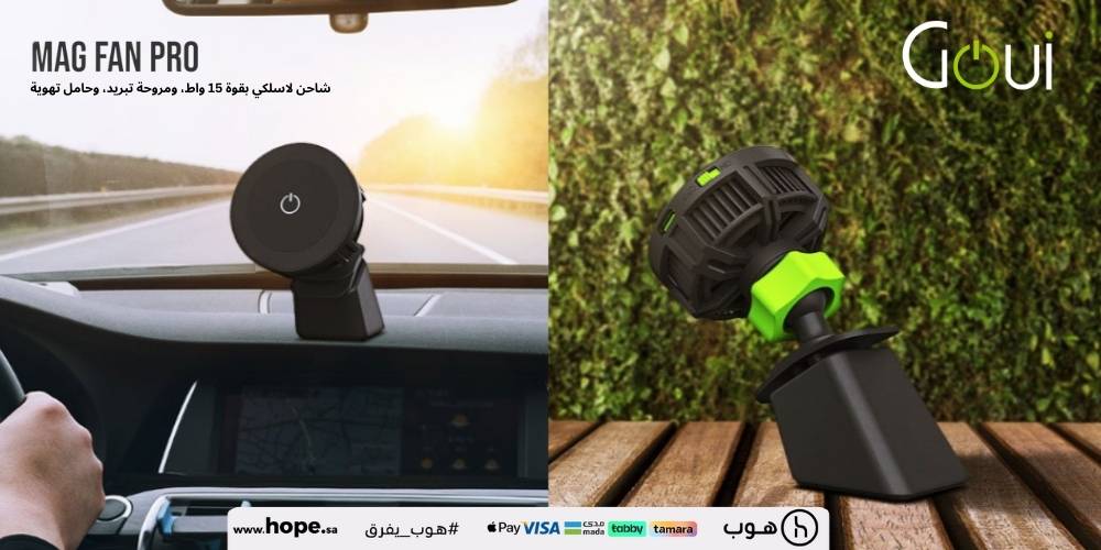 ماج فان برو هو منتج مميز لسيارتك يوفر لك شحن لاسلكي لجوالك مع نظام تبريد يحافظ على هاتفك من السخونة، بالإضافة إلى حامل للسيارة وكابل شحن بطول 1.5 متر.